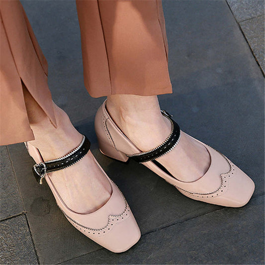 Odetina Women New Block Thick High Heel Square Toe Mary Janes Pumps
