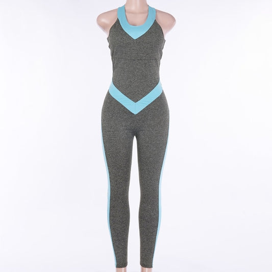 Backless Sports Jumpsuit Woman 2021 Yoga Fitness Overalls Women Sportswear Dry Fit Gym Clothing Workout Clothes Tracksuit Gray