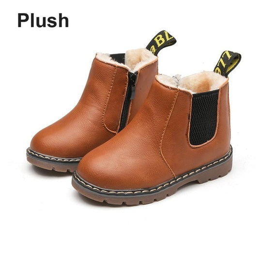 SKOEX Children's Boots Fur Lined Waterproof Side Zipper Short Ankle Winter Shoes