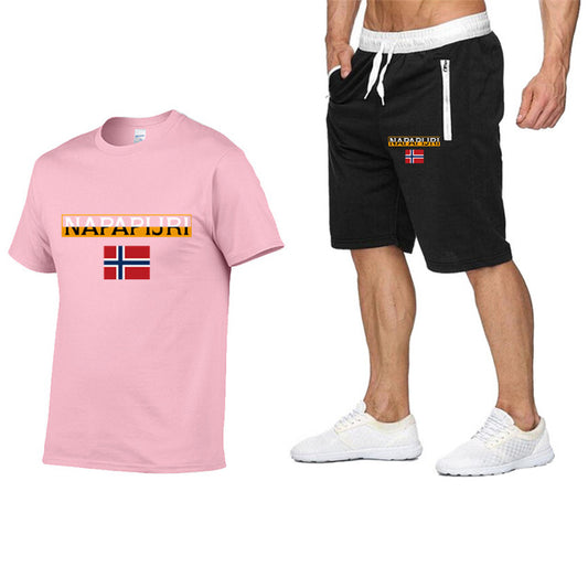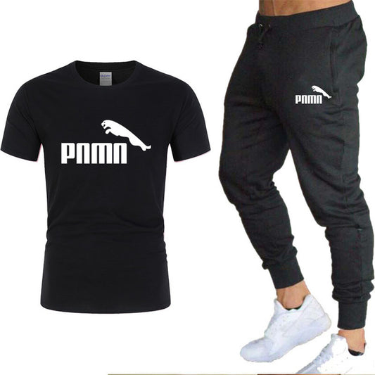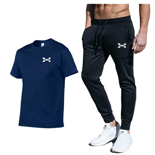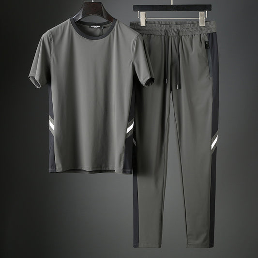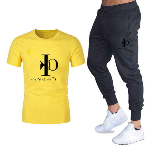 new fashion trend men's suit sports short-sleeved T-shirt + sports casual trousers